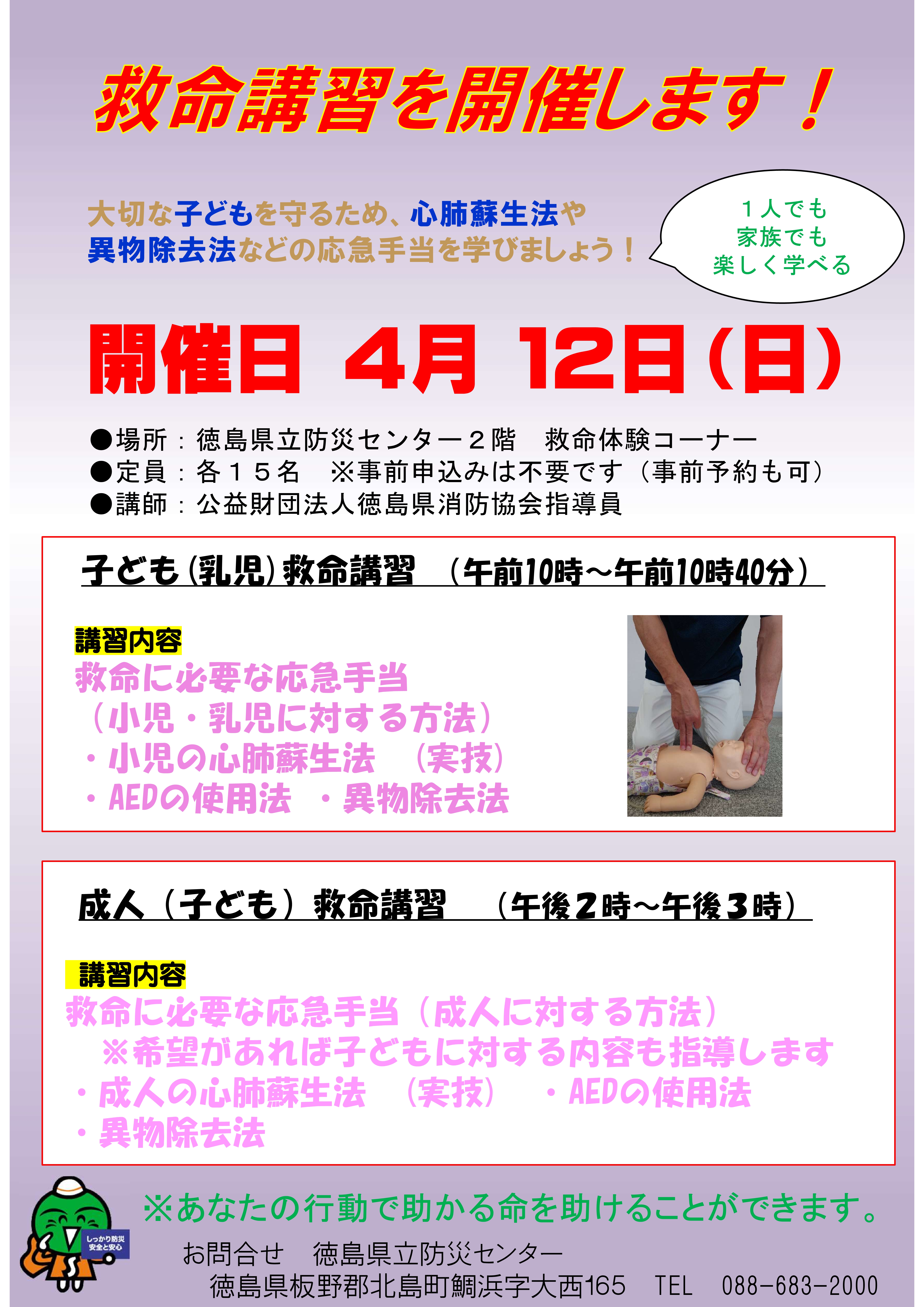 大切な子どもを守るため、心肺蘇生法や異物除去法などの応急手当を学ぶことができます。是非ご参加ください。