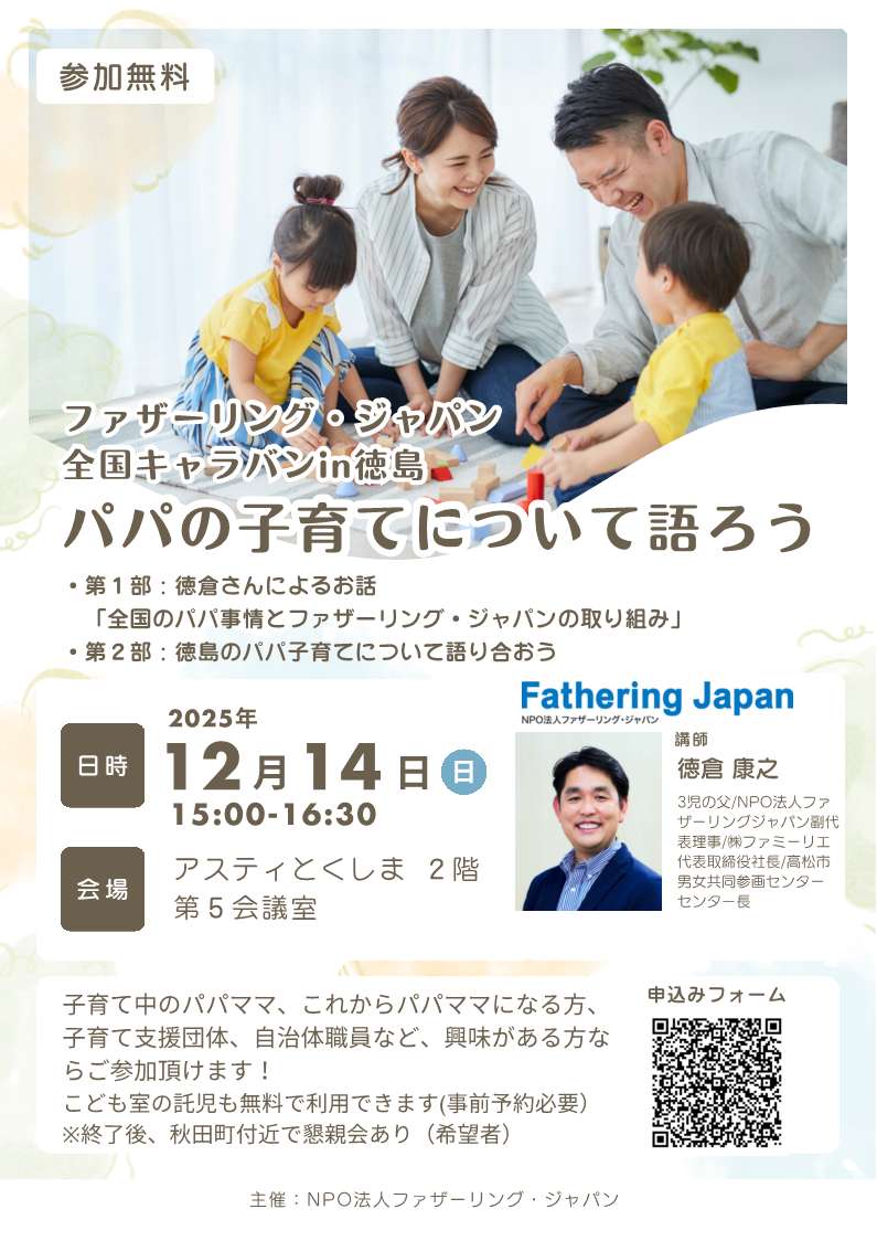 NPO法人ファザーリング・ジャパンが開催する「ファザーリング・ジャパン全国キャラバンin徳島」についてご案内いたします。