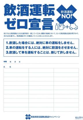 事業所等で「飲酒運転ゼロ宣言」を実施・掲示して、飲酒運転の根絶に取り組みましょう。