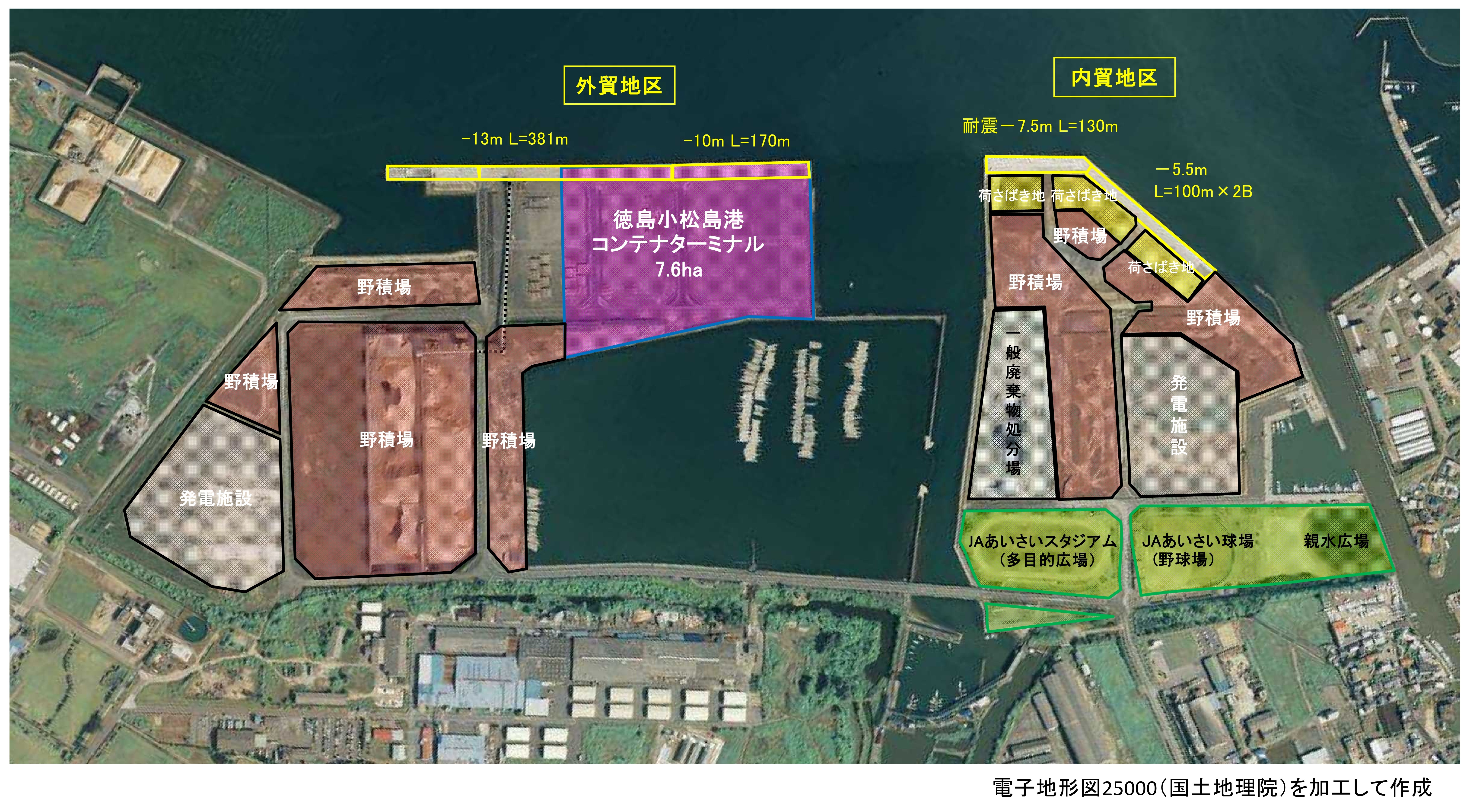 水深10m、水深13mの岸壁が整備されています。