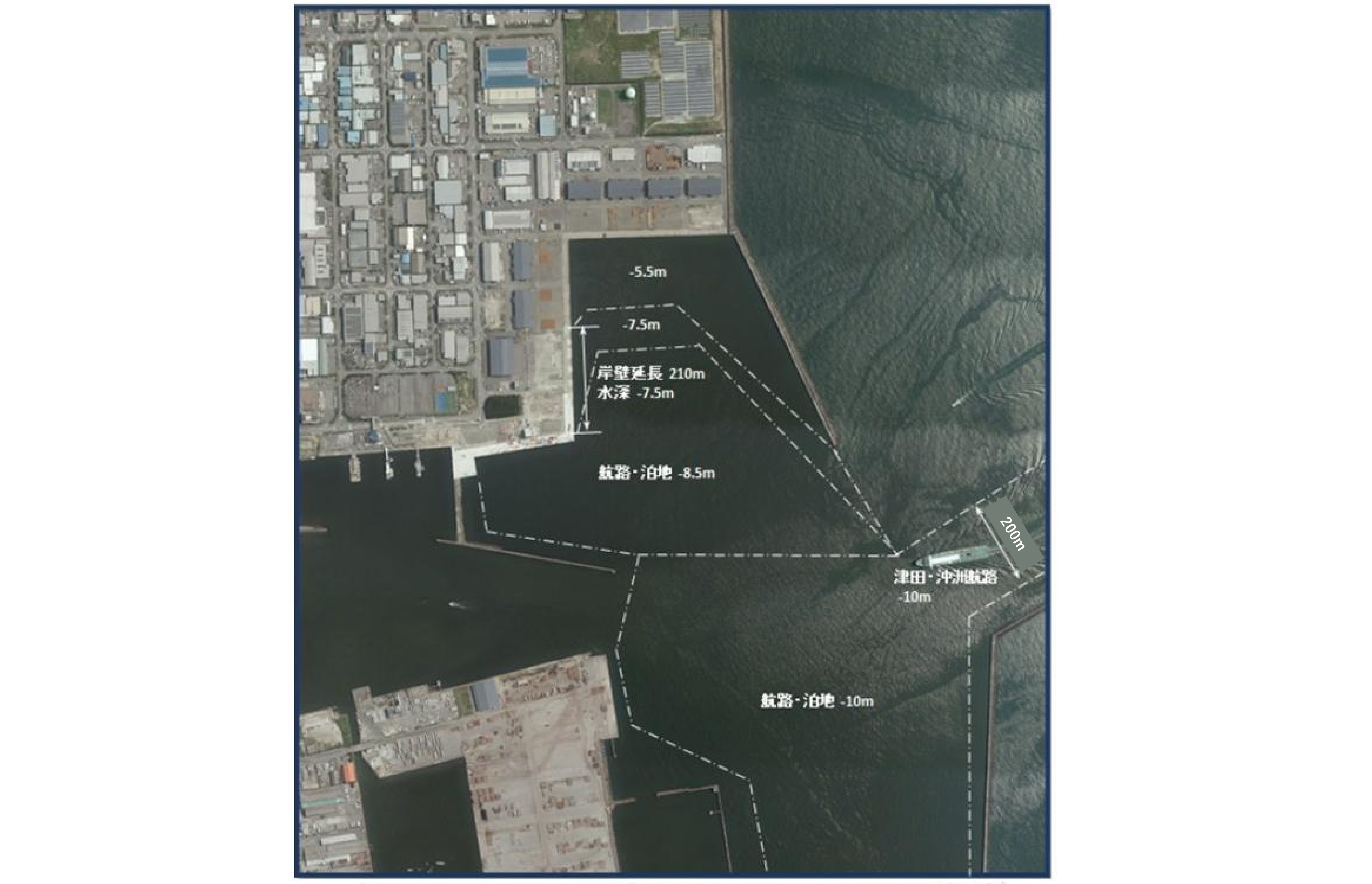 岸壁延長(水深) | 岸壁の高さ | 岸壁の幅 | 航路幅(水深) |