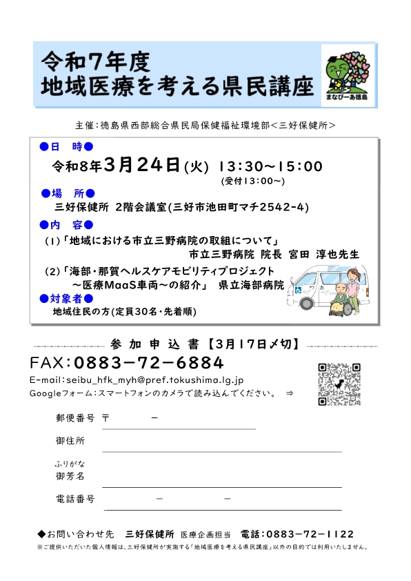 三好保健所では、地域住民の方に地域医療の課題について理解を深めていただくことを目的として