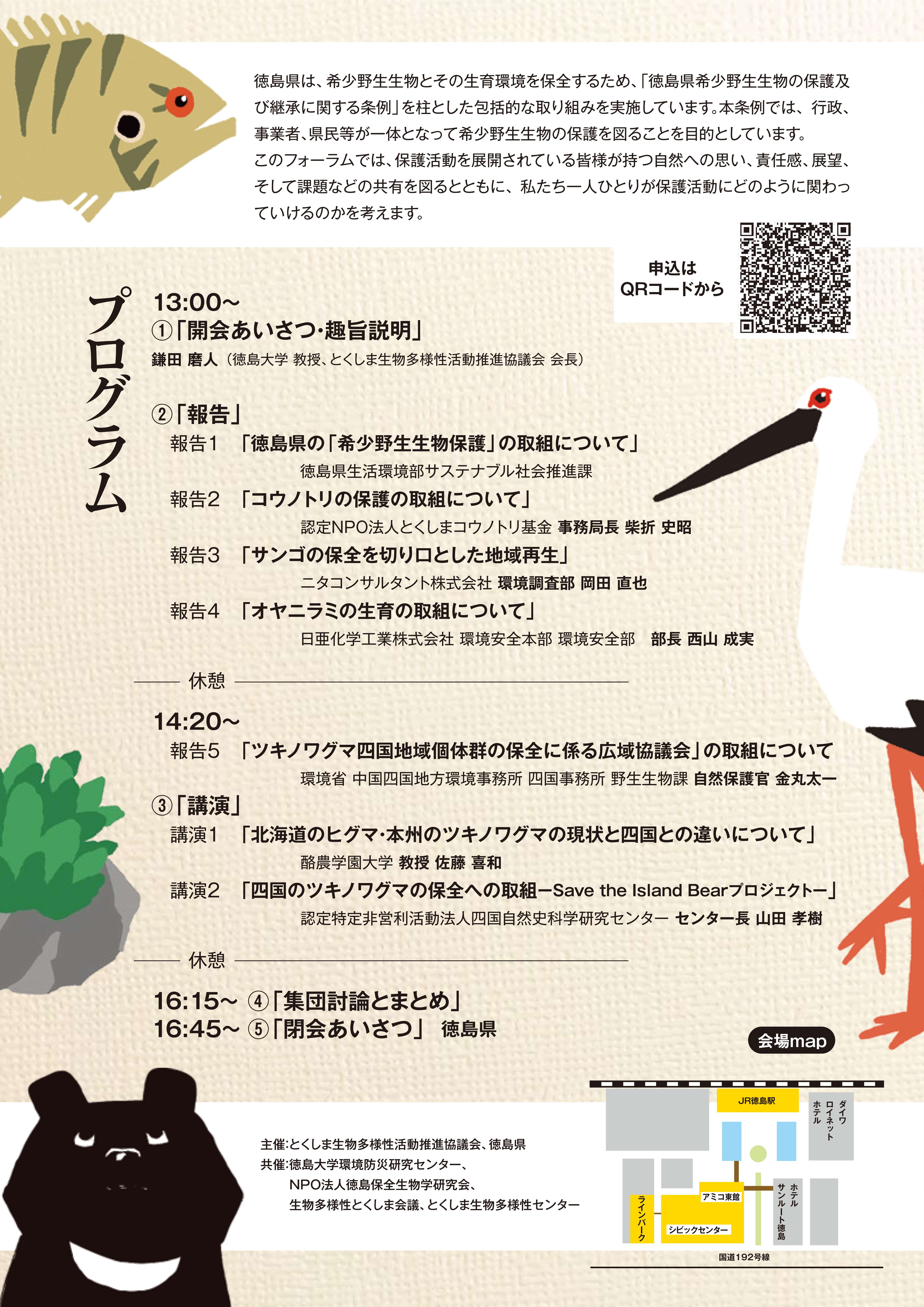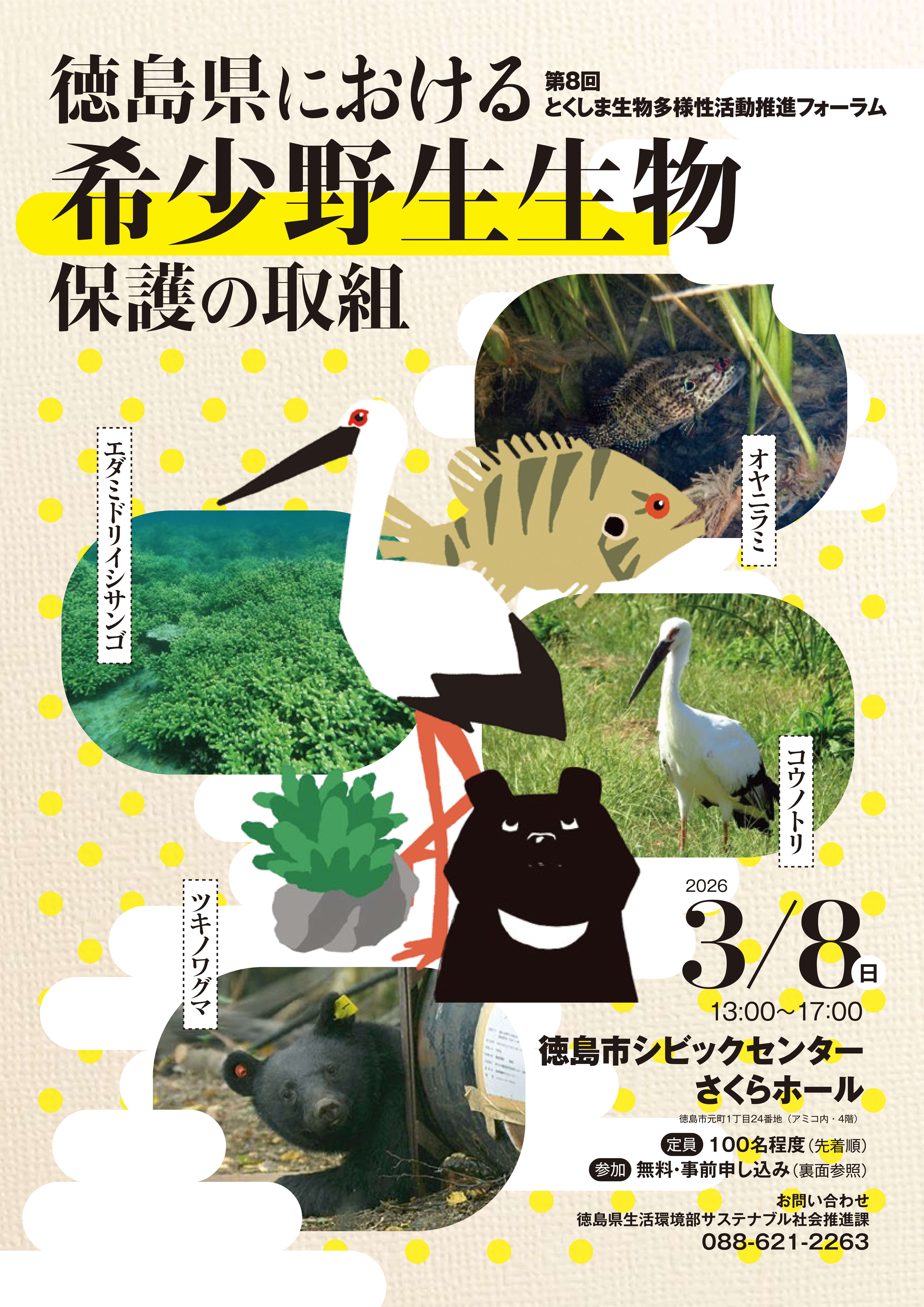 この度、「徳島県における希少野生生物保護の取組」をテーマにフォーラムを開催します。