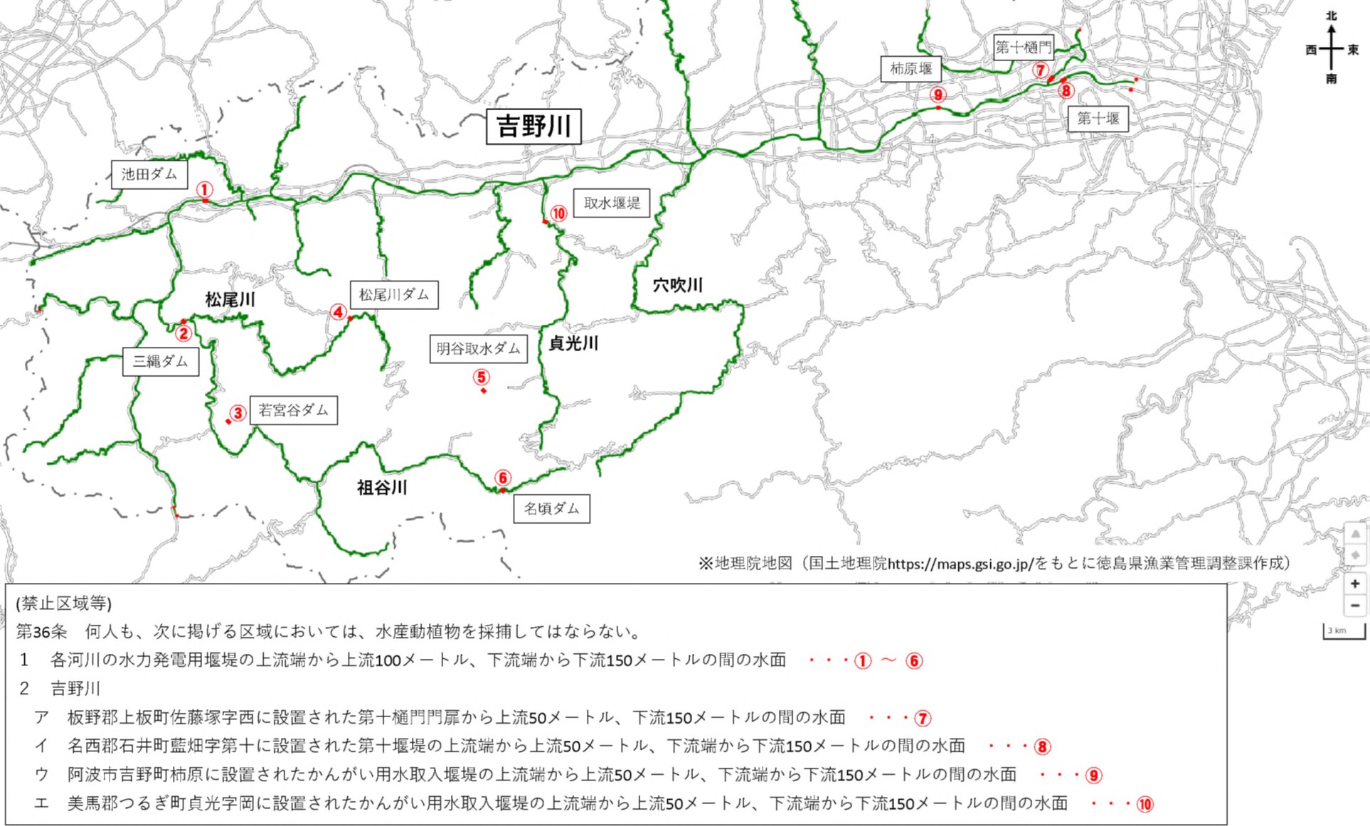 吉野川に設定されていた第5種共同漁業権(内共第16号)は令和7年12月11日付けで消滅しました。