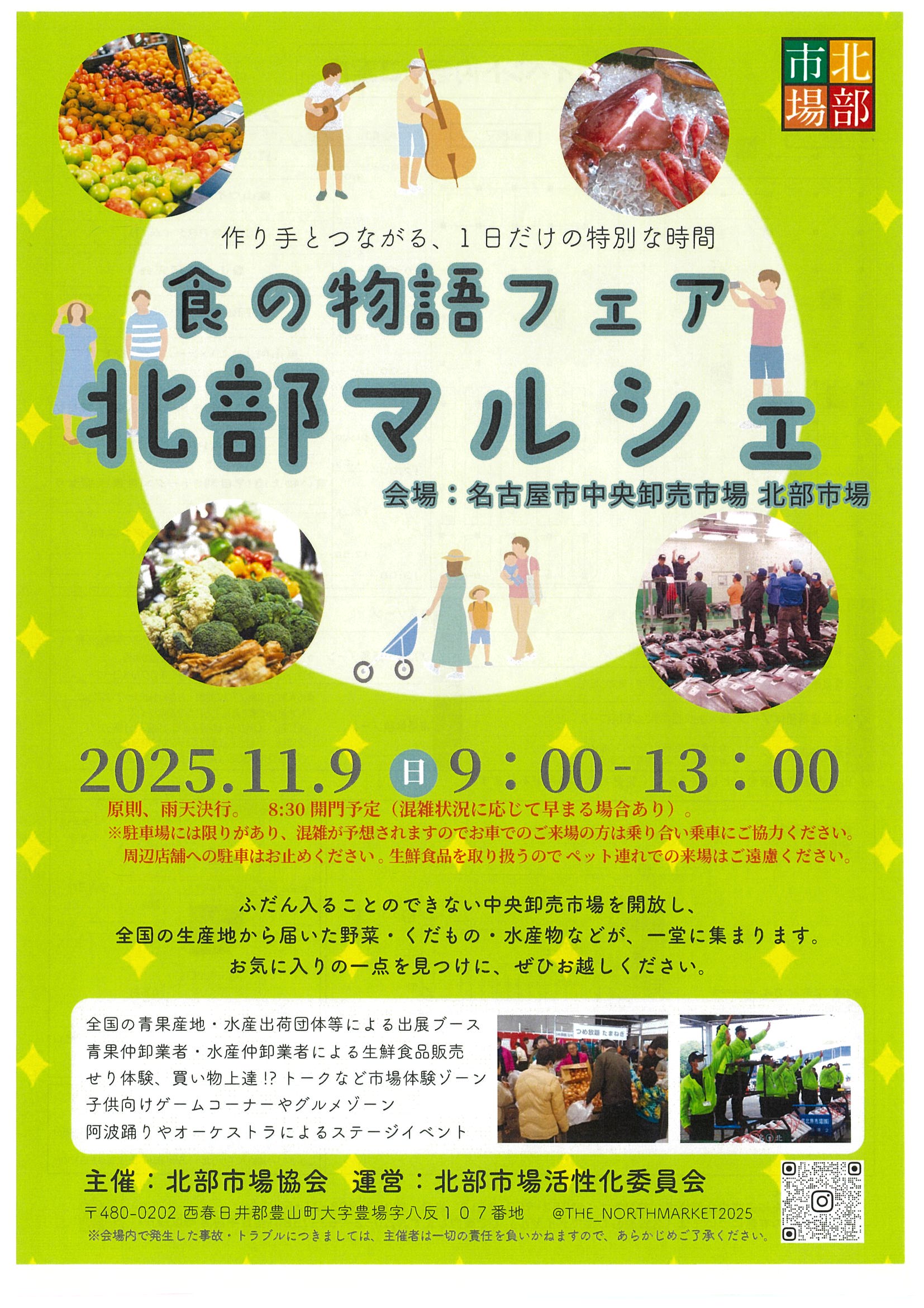 名古屋市中央卸売市場北部市場にて毎年恒例の「食の物語フェア2025 北部マルシェ」が開催され、徳島のブースも出展します!