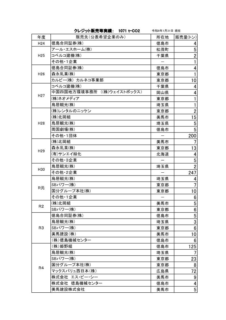 現在発行しているクレジットは、平成22~23年度に間伐を実施した約150ヘクタール分の森林が吸収したCO₂です。