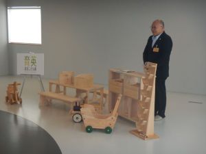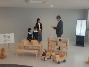 「とくしま協働の森づくり事業」の一つとして、県産材を活用して木製遊具を製作することにより、県産木製品の利用を促進し、二酸化炭素の固定量を増加させるとともに、製作した木製遊具を保育所等に寄贈し、次代を担う子どもたちの「木育活動」につなげる取組。