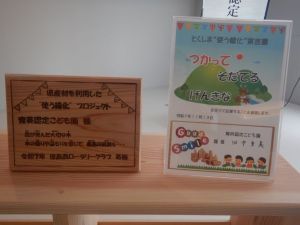 「とくしま協働の森づくり事業」の「”使う緑化”プロジェクト」において、パートナー団体である「徳島西ロータリークラブ」様が、徳島市の「育英認定こども園」に木製遊具を寄贈しました!