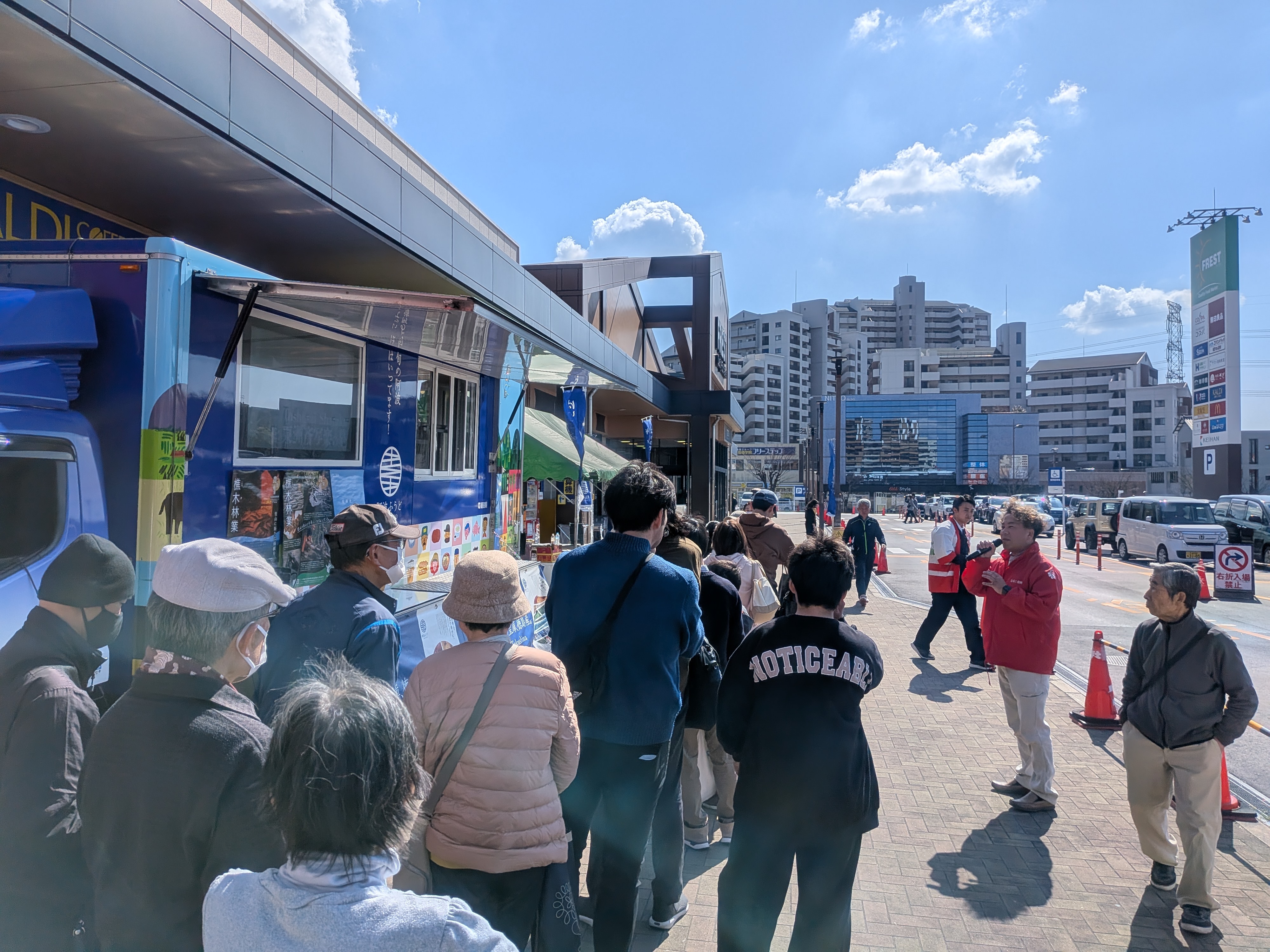 22日にはフレスト松井山手店(京都府京田辺市)にて「阿波ふうど・鳴門フェア」が開催され、県産農産物や鳴門市の物産販売が行われました。会場ではPRキッチンカー「でり・ばりキッチン 阿波ふうど号」による試食配布や、焼き芋機を使った熱々の焼き芋が振る舞われたほか、阿波おどりや「すだちくん」のグリーティング、野菜の計量大会など多彩なイベントで盛り上がりを見せました。また、県内から「なると金時」や「れんこん」の生産者も駆けつけ、来場者へ直接その魅力を伝えるなど、終始多くのお客さんで賑わいました。