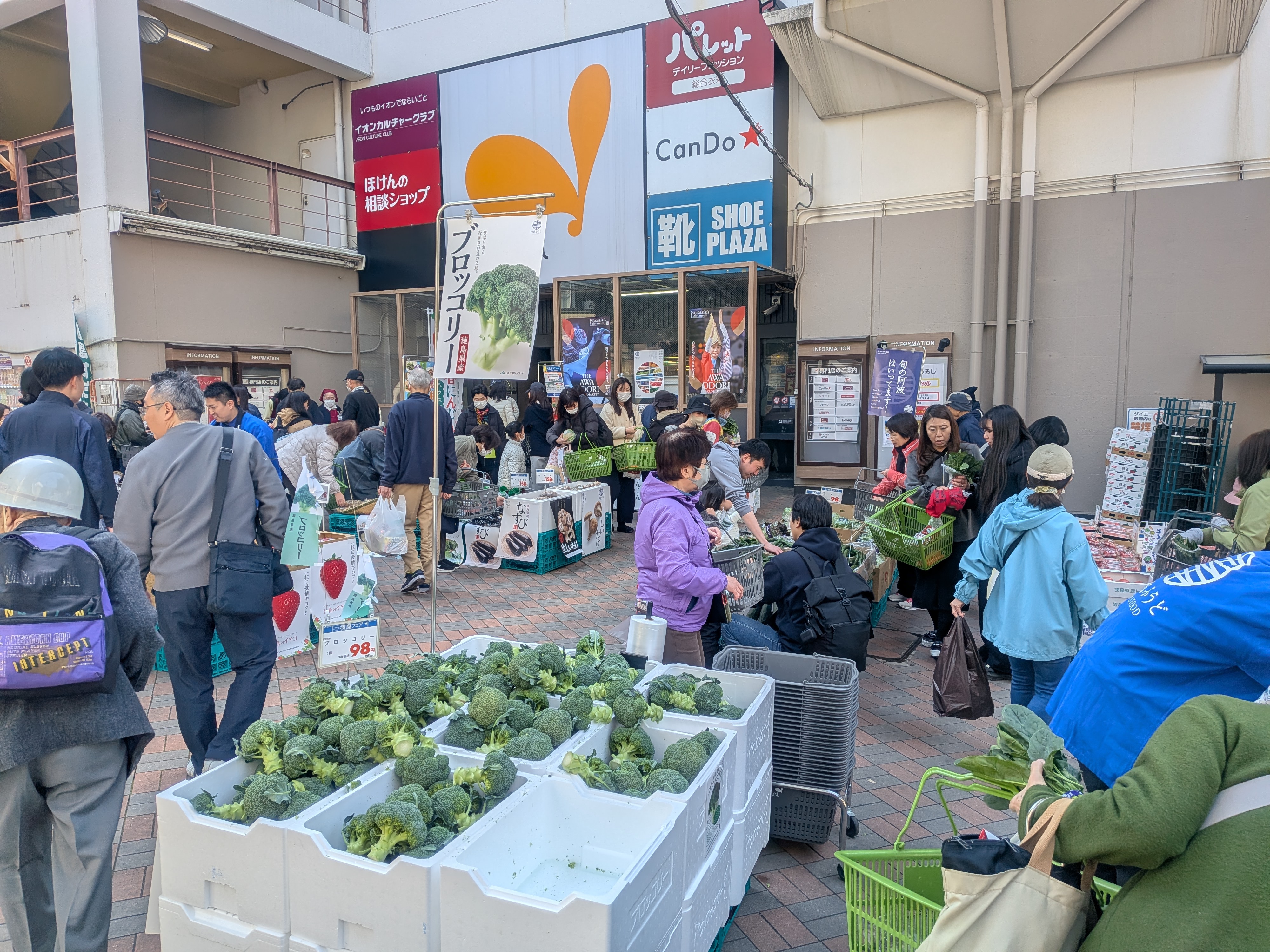 21日にダイエー池田駅前店(大阪府池田市)で実施した「阿波ふうどフェア」では、店頭ブースでの県産農林水産物の販売に加え、PRトラック「でり・ばり キッチン 阿波ふうど号」による試食や阿波おどりの披露が行われました。イベントは常に多くの人で賑わう大盛況となり、販売物はほぼ完売しました。