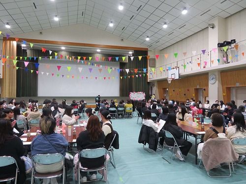 ゲームやクイズなどの楽しい企画が続き、会場は大いに盛り上がりました。体育館の中は、外の寒さが信じられないほどの熱気に包まれ、笑顔と歓声があふれていました。さらに、教員によるダンスなどのパフォーマンスも披露され、学生と教員が一体となって会を盛り上げました。