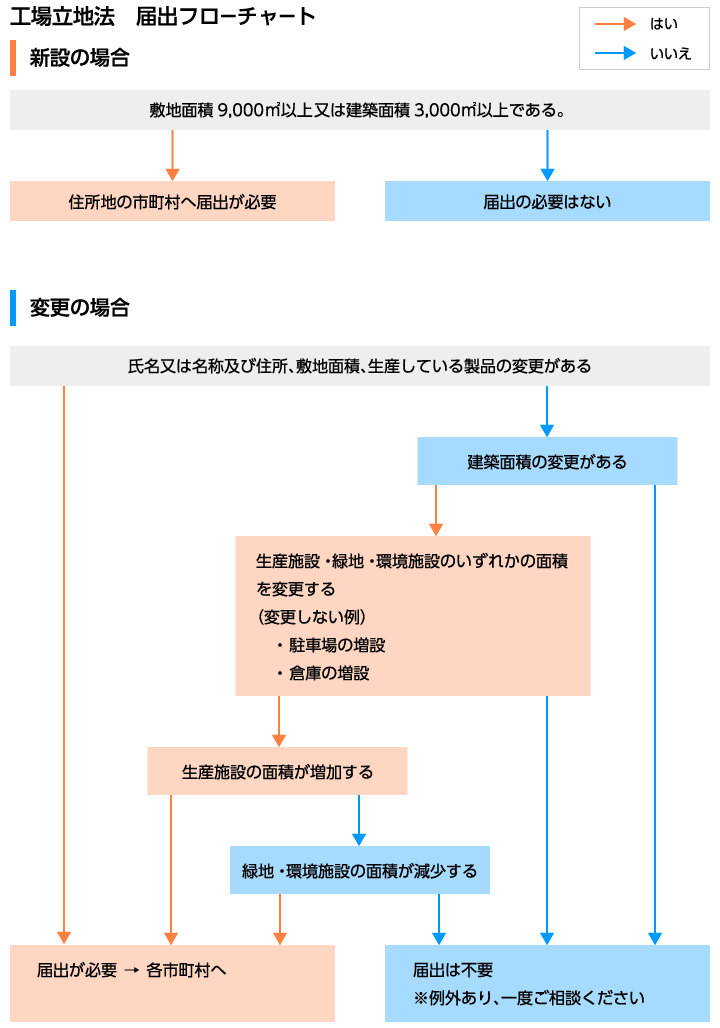 ※一定規模以上の工場の新設・変更等を行う場合は、市町村への届出が必要です。詳しくは、下記をご参照の上、窓口までお問い合わせください。