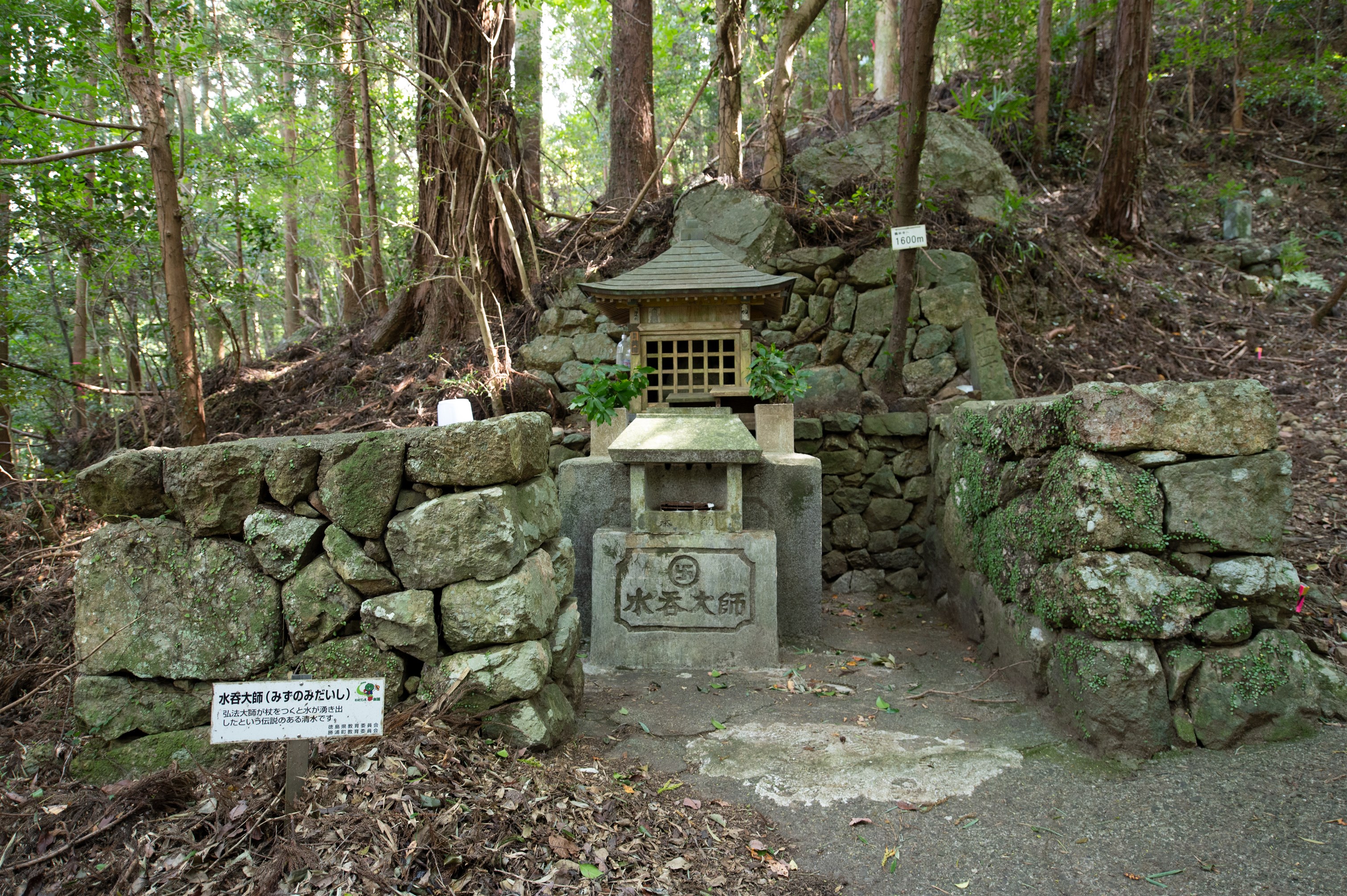 弘法大師が杖でつくと水が噴き出したという伝説が残る『水呑大師』は、現在でも水が湧き出る。